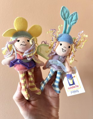 Set of two fun finger puppets from Manhattan Toy – ‘Beneath the leaf’ Fairies.